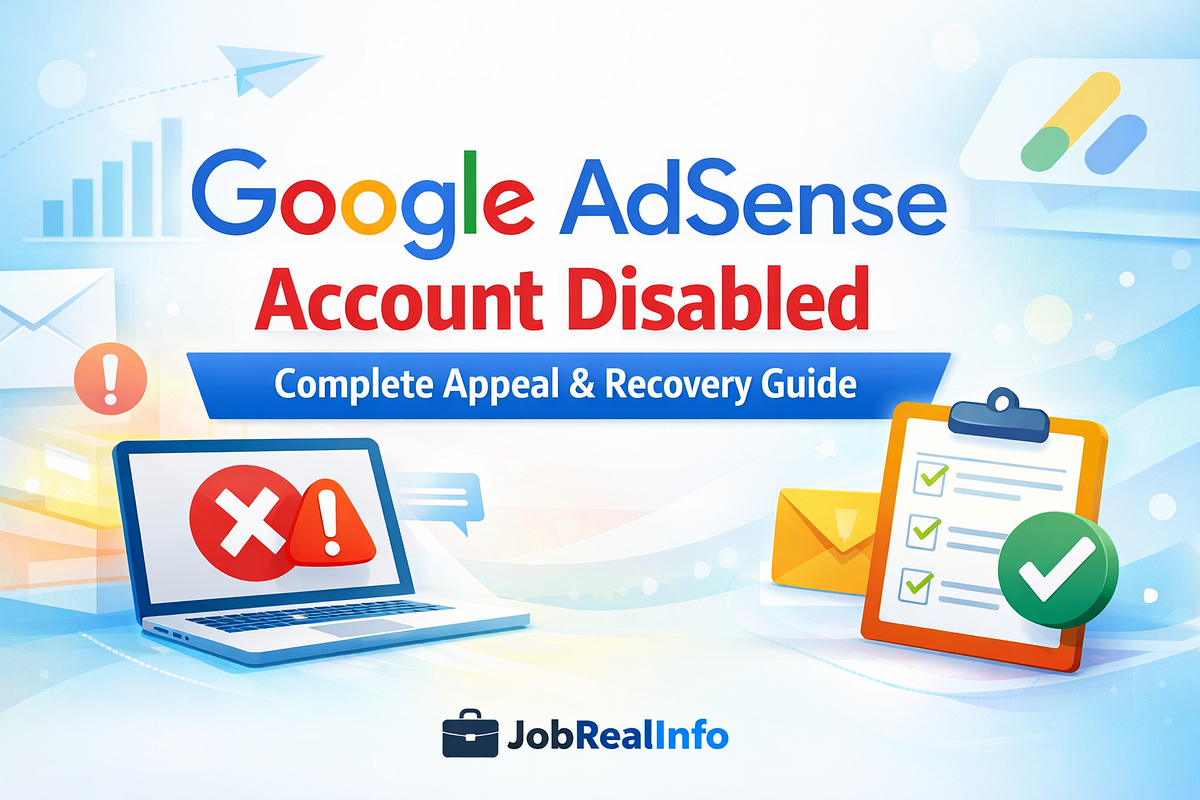 Wyłączenie konta Google AdSense może być stresujące, zwłaszcza gdy witryna jest Twoim głównym źródłem dochodów. Wielu blogerów wpada w panikę i myśli, że konto zniknęło na zawsze, ale prawda jest taka, że większość kont AdSense można odzyskać, jeśli podejmiesz właściwe kroki. W tym przewodniku dowiesz się, dlaczego konta AdSense są wyłączane, jak prawidłowo się odwołać, jak bezpiecznie odzyskać konto i jak uniknąć tego problemu w przyszłości. Naciśnij Enter lub kliknij, aby wyświetlić obraz w pełnym rozmiarze Wyłączone konto Google AdSense – kompletny przewodnik dotyczący odwołań i odzyskiwaniaDlaczego konta Google AdSense zostają wyłączoneGoogle wyłącza konta, aby chronić reklamodawców i użytkowników. Najczęstsze przyczyny to nieprawidłowy ruch, przypadkowe kliknięcia reklam, treści wprowadzające w błąd, naruszenia zasad, skopiowane treści i złe doświadczenia użytkowników. Czasami konta są wyłączane bez ostrzeżenia, szczególnie jeśli Google wykryje nietypową aktywność. Pierwsza rzecz, jaką należy zrobić po wyłączeniu AdSense. Najważniejszym krokiem jest zachowanie spokoju i uważne przeczytanie e-maila od Google. Ten e-mail wyjaśnia główny powód działania. Nie składaj wielu odwołań ani nie twórz nowego konta, ponieważ może to pogorszyć sytuację. Jak złożyć skuteczne odwołanie w AdSense Przed wysłaniem odwołania rozwiąż problemy w swojej witrynie. Usuń skopiowane treści, zmniejsz liczbę miejsc docelowych reklam, popraw szybkość strony i sprawdź źródła ruchu. Gdy już wszystko będzie czyste, złóż jasne i uczciwe odwołanie. Wyjaśnij, co poszło nie tak, jakie zmiany wprowadziłeś i jak będziesz przestrzegać zasad AdSense w przyszłości. Czy można odzyskać wyłączone konto AdSense? Tak, wielu blogerów pomyślnie odzyskuje swoje konta. Zatwierdzenie zależy od tego, jak dobrze rozumiesz problem i jak poważnie go rozwiązujesz. Krótki, uczciwy i dobrze napisany apel zwiększa Twoje szanse. Jak zapobiec problemom z kontem AdSense w przyszłościZawsze skupiaj się na oryginalnych treściach, unikaj botów ruchu, nigdy nie klikaj własnych reklam i ściśle przestrzegaj zasad Google. Wysokiej jakości treści i zaufanie użytkowników to klucze do długoterminowego sukcesu AdSense. Uwagi końcowe Wyłączone konto AdSense nie oznacza końca Twojej przygody z blogowaniem. Dzięki cierpliwości, właściwym poprawkom i silnemu urokowi powrót do zdrowia jest możliwy. Ucz się na błędach, ulepszaj swoją witrynę i rozwijaj się mądrzej. Przeczytaj pełny szczegółowy przewodnik na JobRealInfo: https://www.jobrealinfo.com