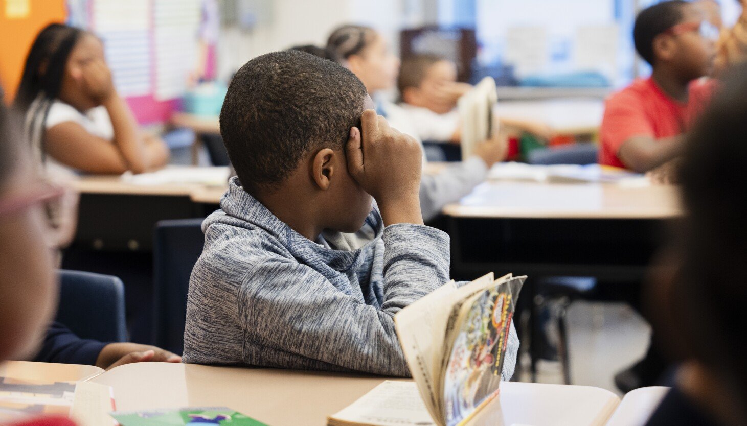 A student sits in the classroom at Willa Cather Elementary School in the Garfield Park neighborhood. Illinois’ 2024 budget included the minimum increase for education funding, which is what the state board is recommending this year.