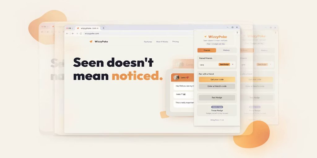 WizzyPoke to rozszerzenie przeglądarki, które umożliwia subtelne potrząśnięcie ekranem, aby zwrócić uwagę kogoś, kto przegapił Twoją wiadomość. Po sparowaniu za pomocą prostego 6-cyfrowego kodu możesz wysłać szturchnięcie, które spowoduje drganie ekranu w formie wibracji i dźwięk, nawet jeśli znajdujesz się na innej karcie lub w innej witrynie. Działa na wszystkich kartach, od aplikacji do przesyłania wiadomości po witryny wideo bez kont i loginów. Darmowa wersja zawiera ograniczoną liczbę codziennych podpowiedzi, z opcjonalną aktualizacją premium umożliwiającą nieograniczone korzystanie.