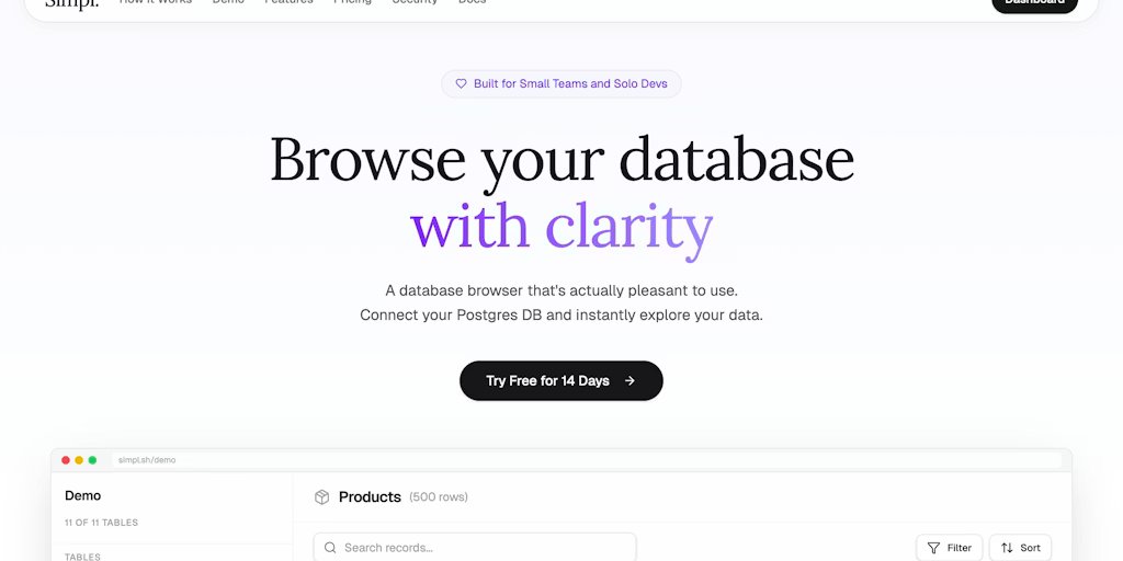 Świetne pytanie @curiouskitty! Mam nadzieję, że to jest odpowiedź Simpl nie próbuje zastąpić DataGrip, DBeaver czy TablePlus. Te narzędzia są doskonałe, gdy trzeba pisać złożony SQL, przeprowadzać migracje lub pracować głęboko w bazie danych przez cały dzień. To nie jest problem, który rozwiązuje Simpl. Tam, gdzie Simpl wyraźnie wygrywa1. Szybkie odpowiadanie na pytania dotyczące produktu „Co zrobił ten użytkownik?” „Dlaczego ten rekord wygląda źle?” Zamiast pisać zapytania i ręcznie łączyć tabele, otwierasz rekord i w naturalny sposób klikasz relacje. Listy, rekordy i powiązane dane pozostają w jednym przepływie.2. Odkrywanie nieznanych schematów Powrót do projektu lub wdrażanie kogoś nowego.Simpl jest stworzony do odkrywania. Przejrzysta nawigacja po relacjach, przegląd schematu i pola uwzględniające typy oznaczają mniej zapamiętywania nazw tabel i lepsze zrozumienie, w jaki sposób dane do siebie pasują.3. Małe, bezpieczne edycjePoprawianie literówek lub aktualizacja statusu.Edycje wbudowane sprawiają wrażenie zamierzonych i nie wymagają większego tarcia, niż wydawanie poleceń za pomocą elektronarzędzia.4. Niewielki wysiłek, okazjonalne użycie. Wklej parametry połączenia i gotowe. Żadnych lokalnych ustawień, sterowników ani rozbudowy interfejsu użytkownika. Idealne, gdy zadanie jest małe, ale liczy się czas. Tam, gdzie Simpl nie jest konkurencją. Jeśli cały dzień żyjesz w SQL, te narzędzia wygrywają. Jeśli chcesz szybkiej przejrzystości przy minimalnym obciążeniu poznawczym, wygrywa Simpl.