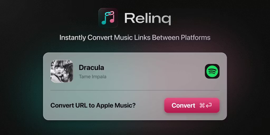 Mój brat korzysta z Apple Music, ja korzystam ze Spotify. Uwielbiamy dzielić się ze sobą muzyką, ale trudności związane z ręcznym wyszukiwaniem utworów na drugiej platformie sprawiły, że po prostu… zatrzymaliśmy się. Więc zbudowałem Relinq. Jest to natywna aplikacja z paskiem menu — skopiuj łącze muzyczne, a pojawi się wyskakujący toast, umożliwiający przekonwertowanie go na preferowaną usługę jednym kliknięciem. Przekonwertowany link trafia bezpośrednio do schowka i jest gotowy do udostępnienia. Sprawdź tutaj – https://relinq.app Daj mi znać, jeśli masz jakieś pytania lub uwagi!