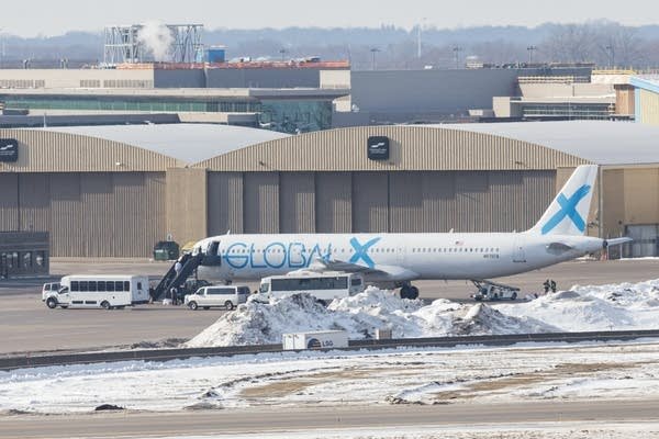 People detained by ICE board a plane at Minneapolis-St. Paul International Airport on Jan. 9.