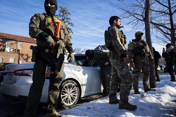 A U.S. Customs and Border Protection officer questions M.A., a U.S. citizen who was born in Somalia, but did not want to share his full name for fear of his safety, in Minneapolis on Monday, Jan. 12.