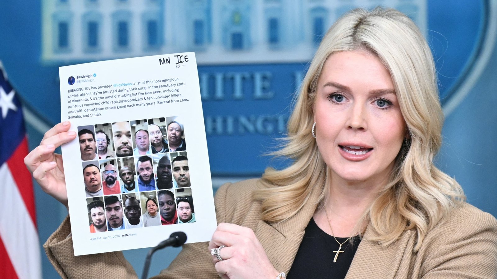 White House Press Secretary Karoline Leavitt holds up a printout of a social media post with pictures of alleged undocumented criminals arrested recently by Immigration and Customs Enforcement (ICE) in Minnesota as she speaks during a press briefing at the White House on Jan. 15, 2026.Mandel Ngan/AFP via Getty ImagesA helicopter flies low across the water at night before heavily armed figures rappel to the ground, take their positions and break down a door. It’s not a trailer for a movie, a video game or a recap of a Pentagon operation.Instead, it’s a video from the Department of Homeland Security showcasing Border Patrol agents at work. Despite the combative visuals, it is captioned with the Bible verse, „Blessed are the peacemakers, for they shall be called sons of God.”In President Donald Trump’s second term, content is governing and governing is content. Videos like these — as well as from friendly influencers — are how the administration justifies its increasingly aggressive immigration policies.The messaging blitz to control the narrative has most recently been on display in Minnesota, where a surge of agents and the fatal shooting last week of 37-year-old Renee Macklin Good by an Immigration and Customs Enforcement agent has put the White House’s online statements and real-life actions in the spotlight.After another ICE-involved shooting in Minneapolis Wednesday evening, videos showed federal agents using flash-bang grenades, pepper balls and chemical irritants against protestors. Almost immediately, pro-Trump influencers used clips of the incident to call for the president to invoke the Insurrection Act and deploy the military.By Thursday morning, Trump had threatened to do just that unless the „corrupt politicians of Minnesota” stopped „the professional agitators and insurrectionists from attacking the Patriots of I.C.E., who are only trying to do their job.” The White House posted an image of armed federal agents, some wearing masks, with the caption, „STAND WITH ICE.”It’s not just Minnesota where the Trump administration is using social media to drive its policies and speak to targeted audiences.In the first weeks of 2026, a military raid to seize Venezuelan President Nicolás Maduro generated a flood of viral images and clips. Official photos of Defense Secretary Pete Hegseth and others showed that they were also monitoring search results for Venezuela on the social media platform X. The Labor Department shared a graphic tagged with a popular QAnon conspiracy slogan urging Americans to „Trust the Plan” while an ICE recruitment post on Instagram proclaims „WE’LL HAVE OUR HOME AGAIN,” attaching a song of the same name popularized by white supremacists.In an image provided by the White House, Chairman of the Joint Chiefs of Staff Gen. Dan Caine, left, CIA Director John Ratcliffe, center, and Secretary of Defense Pete Hegseth, right, monitor U.S. military operations in Venezuela on Jan. 3 from President Trump’s Mar-a-Lago club in Florida. On Hegseth’s right is a display featuring a search for „Venezuela” on the social media platform X.White House/Getty ImagesOnline and from the White House briefing room, Vice President JD Vance chastised the media and critics, while the official White House X account copied popular meme formats to regularly assert that the United States will take over Greenland.”The strategy looks more like continuous campaigning, more so than the controlled and toned down communication we typically would associate with a governing administration,” said Yini Zhang, a University at Buffalo professor who studies political communications on social media. „Volume is a feature, because they can post very frequently and they can shape agenda and framing in real time.”The administration’s posts are often designed to provoke a reaction, troll opponents and frequently paint Democrats, immigrants and the media as threats.”It’s combative, it’s highly provocative, but it’s also focused on a very particular kind of fight between real Americans — which maps on to MAGA — and then this imagined liberal other,” said Whitney Phillips, a professor at the University of Oregon who studies how information impacts people. She added, „It is framed as a full-on cosmic drama between ultimate good and ultimate evil.”In a statement to NPR, White House assistant press secretary Liz Huston said „the White House has an authentic style and unmatched communications strategy because it’s led by the greatest communicator in the history of American politics – President Donald J. Trump.”From viral video to funding cuts in three weeksThe Trump administration’s aggressive immigration crackdown in Minnesota, which has been labeled the largest DHS operation in history, was itself propelled by viral social media content created by its allies, specifically a video created by 23-year-old YouTuber Nick Shirley that alleged widespread fraud at several Somali-run daycare centers.Shirley visited a number of daycares unannounced with a camera and an entourage and claimed the daycare centers must not actually be serving children because he found locked doors or staff declined to answer questions and he could not see if there were kids inside. His specific claims are so far unsubstantiated — state investigators found daycares featured in the film operating as expected. Other massive fraud schemes in state social service programs are well documented. In a federal case that began during the Biden administration, at least 78 people, many of them of Somali descent, have been criminally charged related to a $250 million scheme involving a COVID-era nutrition program.Vance quickly praised Shirley’s video and this week, as Shirley released a second one, the White House posted, „The videos from Nick Shirley have shed tremendous light on the situation in Minnesota.”In recent weeks, the Trump administration has announced unprecede